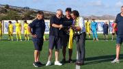 El presidente del club, Paco Soler, agasajó al presidente del Hércules, Carlos Parodi, agradeciéndole su participación con este gesto de amistad entre dos entidades que comparten la pasión por el deporte. Junto a ellos estuvo el concejal de Deportes del Ayuntamiento de El Campello, Marcos Martínez.