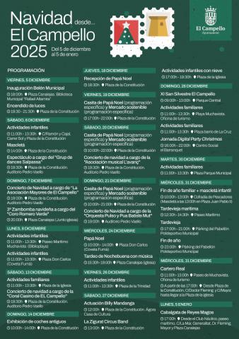 El lunes 8 de diciembre, que es festivo, las actividades se desplazarán a las otras dos grandes áreas urbanas de El Campello: Muchavista y Coveta Fumá, con actividades infantiles desde las 11:00 a las 13:30 horas.