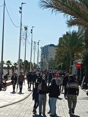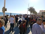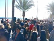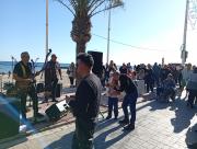 Ambientazo en el paseo marítimo de El Campello en la mañana del último día del año, con terrazas llenas y miles de personas disfrutando de música en directo