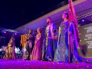 Una vez subieron al escenario los estandartes de todas las comparsas (Cristians del Campello, Els Maseros, Cavallers del Temple, Tercio de Flandes, Jaume I, Els Marinos y Cavallers de Conquesta por el bando cristiano, y por el bando moro las enseñas de Veterans, Pacos, Pollosos, Kordofan, Zaidies, Marrocs, Non Bèbéc, Ain Karim y Meixemet), les tocó el turno a los cargos de 2019,que se despidieron de lo que ciertamente ha sido el reinado más largo de la historia de las fiestas.