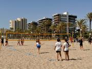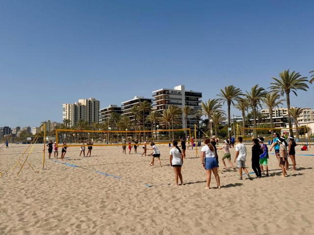 Una mañana diferente, sana y divertida. Más de 200 alumnos y alumnas de cinco colegios de El Campello han aprovechado hoy las instalaciones del “Beach Games Costa Blanca” para celebrar una jornada de deporte en la playa. Hasta allí se han desplazado desde los colegios El Vincle, Rafael Altamira, Fabraquer, Pla de Barraques y Bonny, acompañados de docentes.