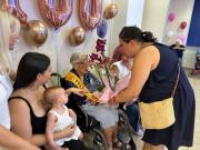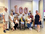 En El Campello se vive bien… y mucho. Ayer, otra mujer se sumó a la cada vez más larga lista de residentes centenarios, y lo hizo rodeada de una parte de sus familiares, el personal que le atiende en la Residencia Orpea, y la concejala de Mayores, Maricarmen Alemañ, que participó de la fiesta con la entrega de un ramo de flores en nombre del pueblo.