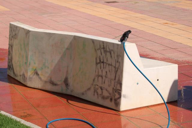 Segunda actuación en ocho meses para eliminar pintadas y graffitis del mobiliario urbano del paseo marítimo de Carrer la Mar de El Campello