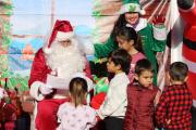 Es costumbre en esta zona de El Campello que Papá Noel entregue en mano los regalos, y como siempre ha sido recibido por las autoridades locales, entre las que se encontraban hoy el alcalde Juanjo Berenguer; la concejala de Fiestas y Tradiciones, Marisa Navarro; y los también concejales Cristian Palomares, Rafa Galvañ y Dorian Gomis.