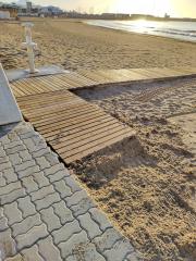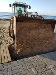 Desde primera hora de la mañana de hoy, y una vez levantada la alerta meteorológica y cesado las lluvias, operarios del departamento de Playas del Ayuntamiento de El Campello han llevado a cabo una operación “exprés” para adecuar los accesos a las playas del municipio para que los bañistas puedan disfrutar de los arenales en este fin de semana, que se anuncia soleado y con temperaturas al alza.