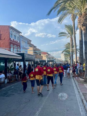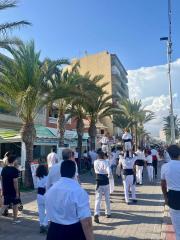 Seis agrupaciones de “muixerangas” de la provincia de Alicante sorprenden a vecinos y visitantes en el paseo marítimo de El Campello